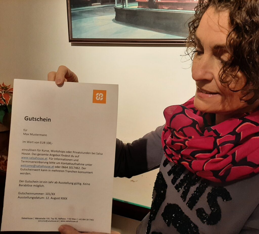 Mag. Karin Eckstein, SalsaHouse, IBAN: AT48 2011 1837 2206 7000.